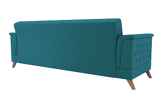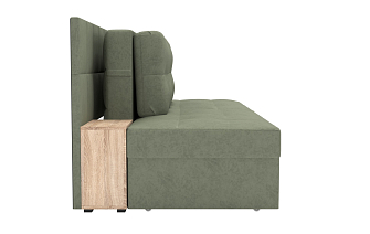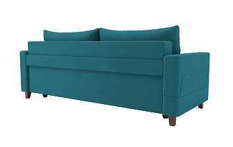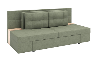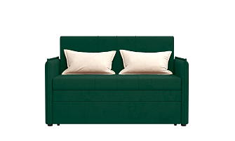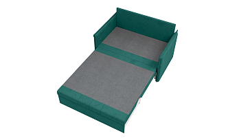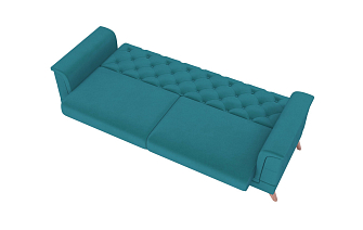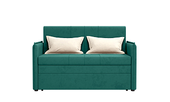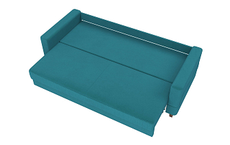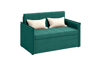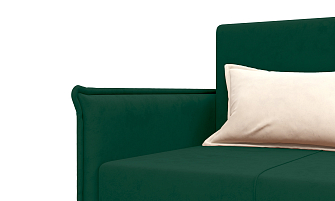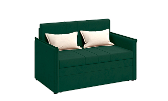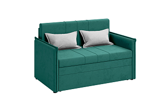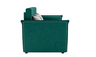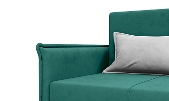 Заказала этот диван в изумрудном цвете. Понравилась его форма – строгая и в то же время необычная. Диван не громоздкий, занимает немного места как в сложенном, так и в разложенном положении. Раскладывается легко. Ткань плотная, качественная и приятная на ощупь.