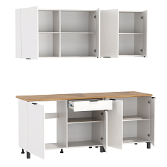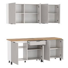 Главный плюс: много шкафчиков.  Выбрали вариант сандал белый. И не прогадали. Смотрится великолепное. Жаль, что двери идут без доводчиков.