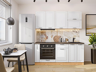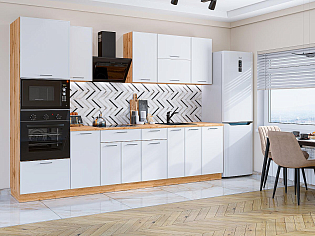 Главный плюс: много шкафчиков.  Выбрали вариант сандал белый. И не прогадали. Смотрится великолепное. Жаль, что двери идут без доводчиков.