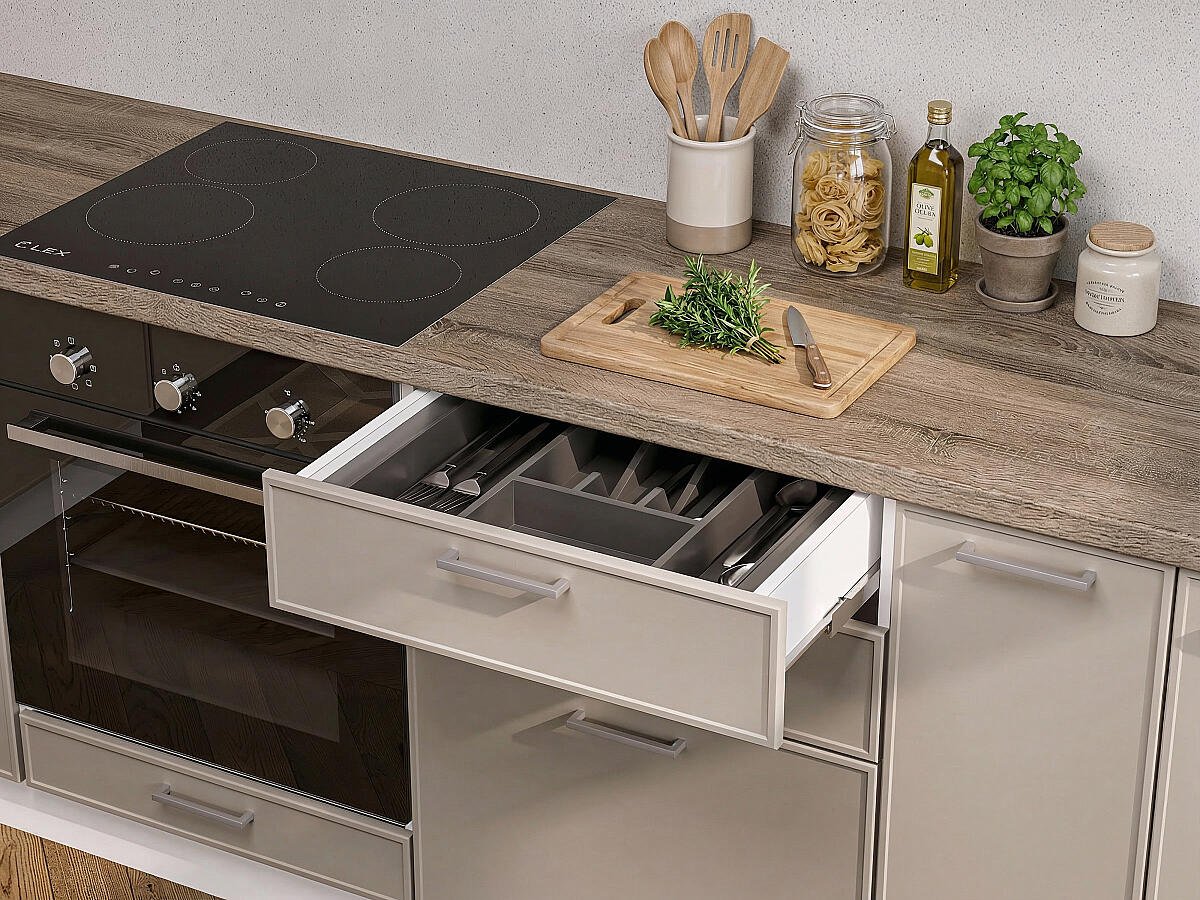 На выбор покупателя влияет конфигурация помещения, целевое назначение, общая площадь. Производитель предусмотрел вариант посекционного приобретения изделий с разными показателями глубины (диапазон 350 — 480 мм).