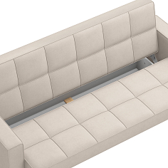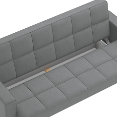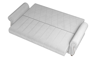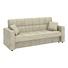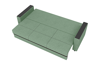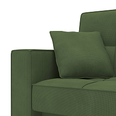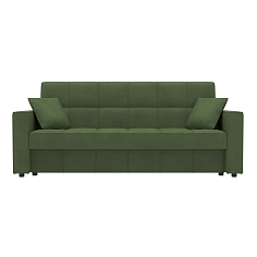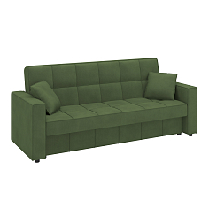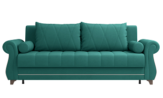 Заказала этот диван в изумрудном цвете. Понравилась его форма – строгая и в то же время необычная. Диван не громоздкий, занимает немного места как в сложенном, так и в разложенном положении. Раскладывается легко. Ткань плотная, качественная и приятная на ощупь.